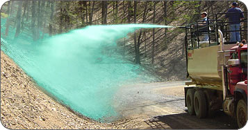 HydroseedingHydroseeding is a planting process which utilizes a slurry of seed and mulch and sprayed over prepared ground in a uniform layer. It promotes quick germination and inhibits soil erosion. The mulch in the hydroseed mixture helps maintain the moisture level of the seed and seedlings. The slurry often has other ingredients including fertilizer, tackifying agents, green dye and other additives. Hydroseeding is used to seed grass on commercial sites, highways, golf courses, lawns and areas too large, inaccessible or unsuitable for conventional methods. |
