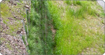 Silt FenceA silt fence, is a temporary sediment control device installed on construction sites, before soil disturbance begins, to protect water quality in nearby streams, rivers, lakes and bays from sediment (loose soil) in storm water runoff. A silt fence consists of a piece of synthetic filter fabric stretched between a series of stakes along a horizontal contour level. The bottom edge of the fabric is trenched into the soil and backfilled on the uphill side. Storm water slowly passes through the fence while depositing its sediments on the uphill side of the fence. Silt fences are perimeter controls and are designed to retain sediment in place where soil is being disturbed by construction processes. |