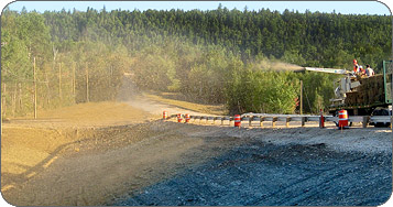 Straw/Hay MulchingStraw Mulching or Straw Blowing consists of placing a uniform layer of straw or hay onto the soil, slope or other area(s) requiring stabilization. The process is typically used for soil stabilization as a temporary surface cover on disturbed areas until soils can be prepared for revegetation and permanent vegetation is established. This is especially effective where road work is being done or where steep slopes present a challenge in controlling erosion damage.